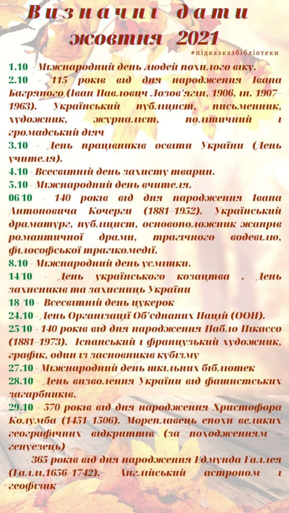 Визначні дати жовтня