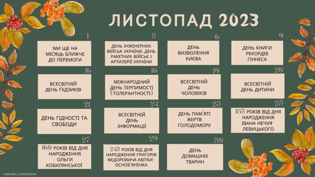 Визначні дати листопада